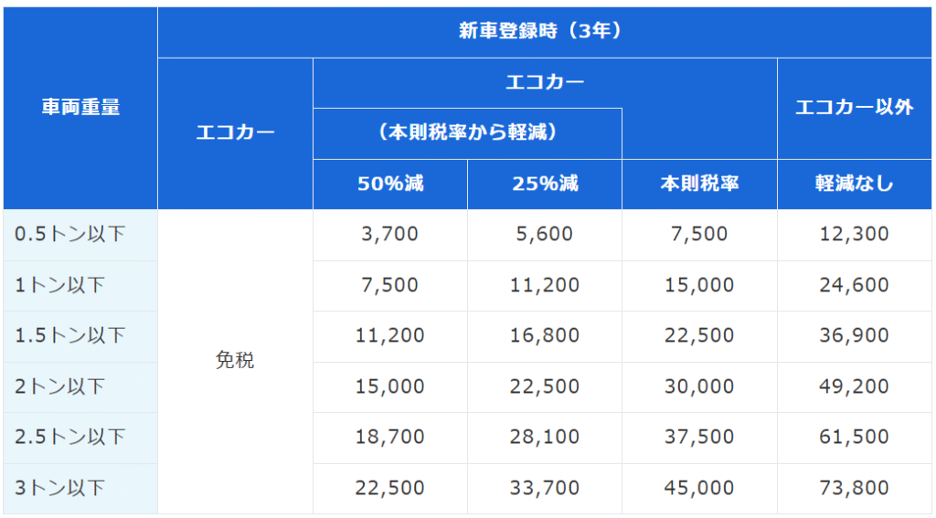 | 軽自動車 | 電気自動車 | 非課税 | |