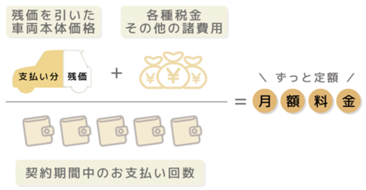 支払う内容は下記の引用先の画像の通り、残価を引いた車体価格に、諸費用を足した額を月額料金として支払います。